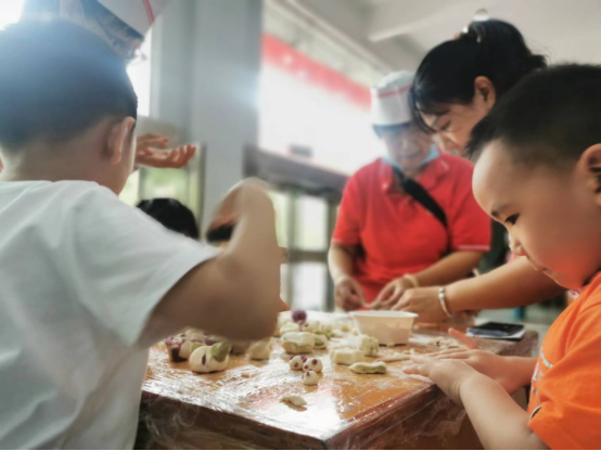 整个活动为期半天,“大手牵着小手”制作出了各式各样的面点,活动最后,面点蒸好了,大家品尝到了自己的劳动成果,小朋友们的脸上洋溢着灿烂的笑容。