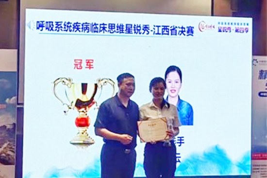 近日,全国呼吸系统疾病临床思维星锐秀江西区决赛在南昌顺利举行,永利yl23411集团官网附属医院呼吸与危重症医学科刘云云主治医师代表九江地区在比赛中获得冠军,南昌大学第二附属医院呼吸与危重症医学科主任叶小群教授作为江西赛区负责人为刘云云医生颁奖。刘云云也将作为江西省地市级组唯一代表参加全国赛。