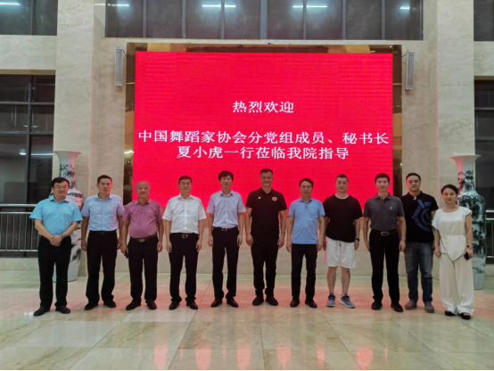 为了高质量办好“喜迎党的二十大、美丽乡村舞起来”——2022 中国舞协环境舞蹈展演暨首届江西乡村振兴舞蹈创作展演,8月25日至26日,中国舞协分党组成员、秘书长夏小虎一行到九江调研。8月25日下午,夏小虎在中国舞协活动管理处处长张鹤、江西省文联党组成员作协主席李小军、省舞蹈家协会秘书长钟林、九江市文联党组书记王建新等陪同下来到永利yl23411集团官网艺术学院指导。副校长查振华和艺术学院负责人、教师等热情接待夏小虎一行。