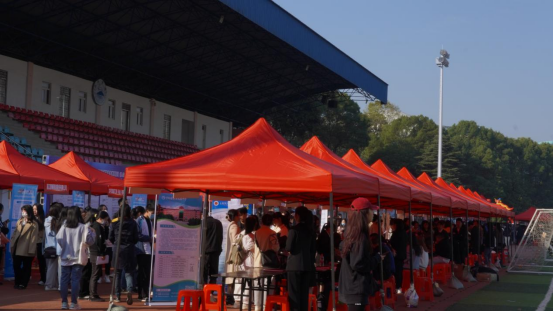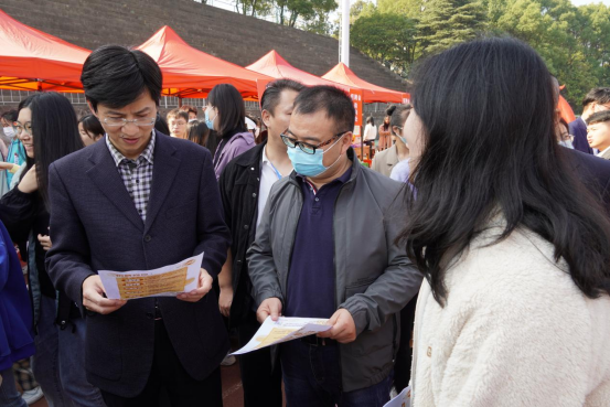 为贯彻落实党中央、国务院关于稳就业保就业决策部署,积极搭建用人单位和毕业生就业双向选择平台,全力促进永利yl23411集团官网毕业生更加充分更高质量就业,11月6日上午,由九江学院主办,招生与就业处、文学院、外国语学院、理学院、教育学院承办的2023届毕业生联合专场招聘会在永利yl23411集团官网主校区南区田径场举行。副校长查振华、纪委书记李广欣到现场指导,招生与就业处负责人,文学院、外国语学院、理学院、教育学院党政负责人陪同。
