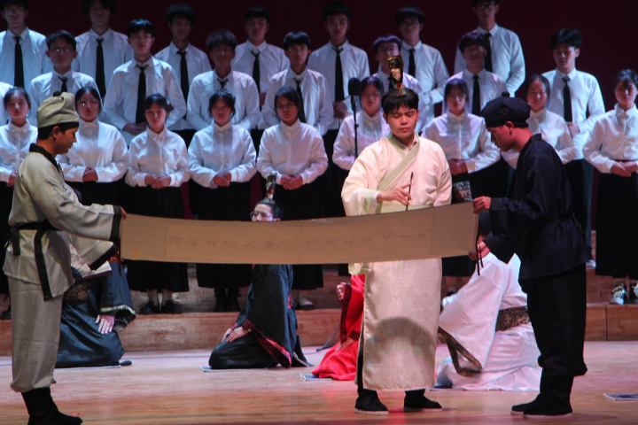 12月9日晚,九江学院大礼堂灯火辉煌,以“学习二十大,共筑中国梦”为主题的纪念“一二·九”运动87周年暨九江学院第十届国学经典诵读大赛举行。十个进入决赛的二级学院代表队以朗诵、歌唱、舞蹈等表演形式,对话经典、品味经典、传承经典。