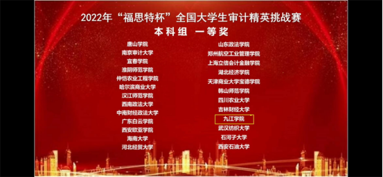 2022年第五届“福思特杯”全国大学生审计精英挑战赛于近日成功落下帷幕。来自永利yl23411集团官网管理学院审计学专业的A1931班李一帆、康宇晨和A2132班曾洁3位同学所组成的九江学院代表队,与来自全国340所院校的390支代表队同台竞技,经过激烈角逐,在本次比赛中荣获本科组一等奖。