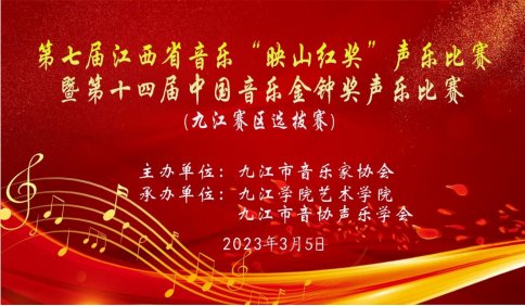 江西省第七届“映山红”奖声乐比赛暨第十四届中国音乐金钟奖声乐比赛九江赛区选拔赛,旨在推动江西省声乐艺术的发展,提高声乐教学水平和促进演唱人才的成长,通过比赛的方式,遴选出成绩优秀的声乐演唱者和优秀教师。