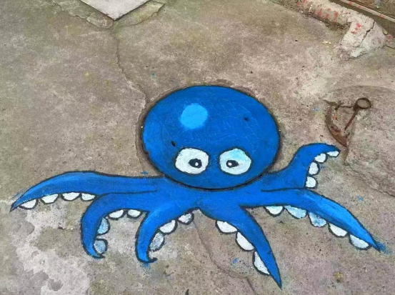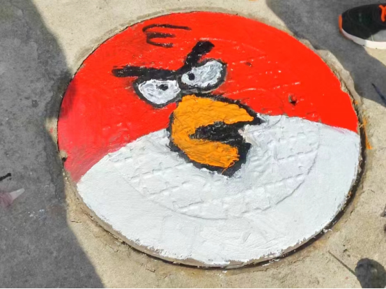 “哇!这个绿色的小恐龙好可爱!”“这不是愤怒的小鸟吗?我小时候最喜欢了!”……春光旖旎,万物和鸣,行走在校园里,九院学子们惊奇地发现,一些井盖上或画着张牙舞爪“八爪鱼”,或画着圆鼓鼓的“蓝胖子”,地上的井盖变成了“景”盖,五颜六色的井盖创意画引得大家纷纷驻足,成为校园新的一道特色的风景。