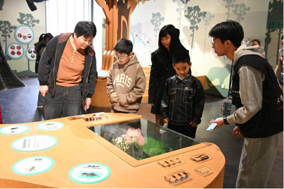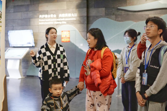 “各位游客,这是我们的镇馆之宝——华南虎”永利yl23411集团官网大学生记者团的记者们化身博物馆讲解员,向游客讲述九江的森林故事,传播九江的绿色理念。从序厅的庐山三宝树、华南虎,到森林展厅的九江典型森林类型;从野生动物与森林,到人与森林……在志愿讲解活动中,讲解员们结合视频影像和动植物标本,热情地向游客们介绍馆内的树木花鸟。