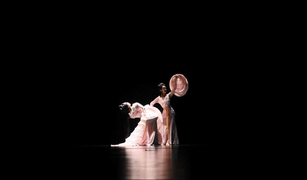 原创古典舞《瑶光赋》以汉代楚地舞蹈为基调,以江西海昏侯墓出土的玉舞人动作造型为灵感,在舞蹈复原的基础上新创了独特的“陀螺袖”。运用多种袖舞技巧,描绘汉代女性端庄温婉的形象,体现了汉代舞蹈在质朴风格之外,另一种秀丽清雅的美学精神。