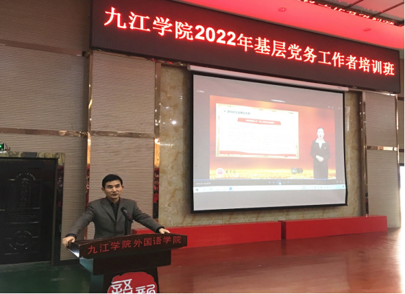 培训课上,马克思主义学院党委副书记李雪教授作了《坚持不懈弘扬伟大建党精神——学习贯彻党的二十大精神》的专题辅导报告。案例教学活动中,医学院党委书记许晓源介绍了党建品牌“医心向党、筑梦青春”的工作模式和创建成效;市直“四强”党支部旅游与地理学院教工二支部原支部书记严宽荣分享了支部建设工作经验;机械与智能制造学院教工一支部书记郭艳艳介绍了优秀主题党日活动“院企共话二十大,双融双育红工匠”的活动背景、过程和成效;文学院辅导员高丹阳介绍了微党课《传承红色家风,共筑家国情怀》的制作意义和录制过程。