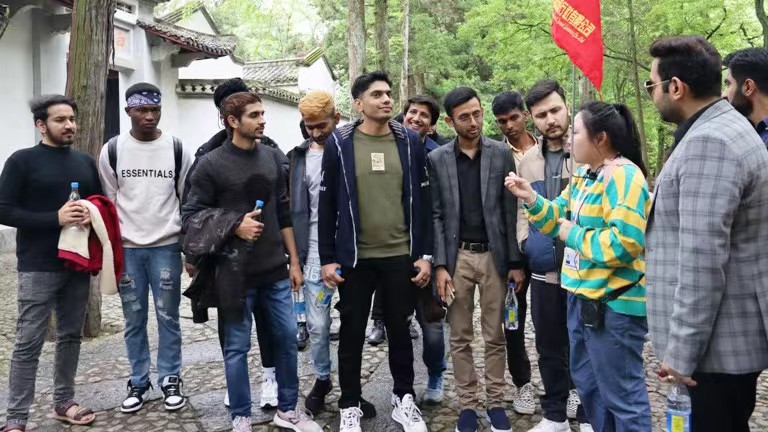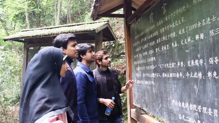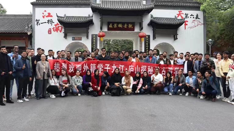 进入白鹿洞书院,外籍学子们边参观边拍照,围成一圈载歌载舞,以自己的方式表达喜悦的心情。这座备受历代文人学子敬仰的千年学府带领学子们穿越悠悠岁月,让他们感受到九江深厚的人文历史。“走过状元桥,看了进士榜,知道白鹿洞书院影响后世700多年,我体会到了白鹿洞书院作为‘天下书院之首’的伟大影响。” 来自印度的苏瑞在参观之后感叹道。