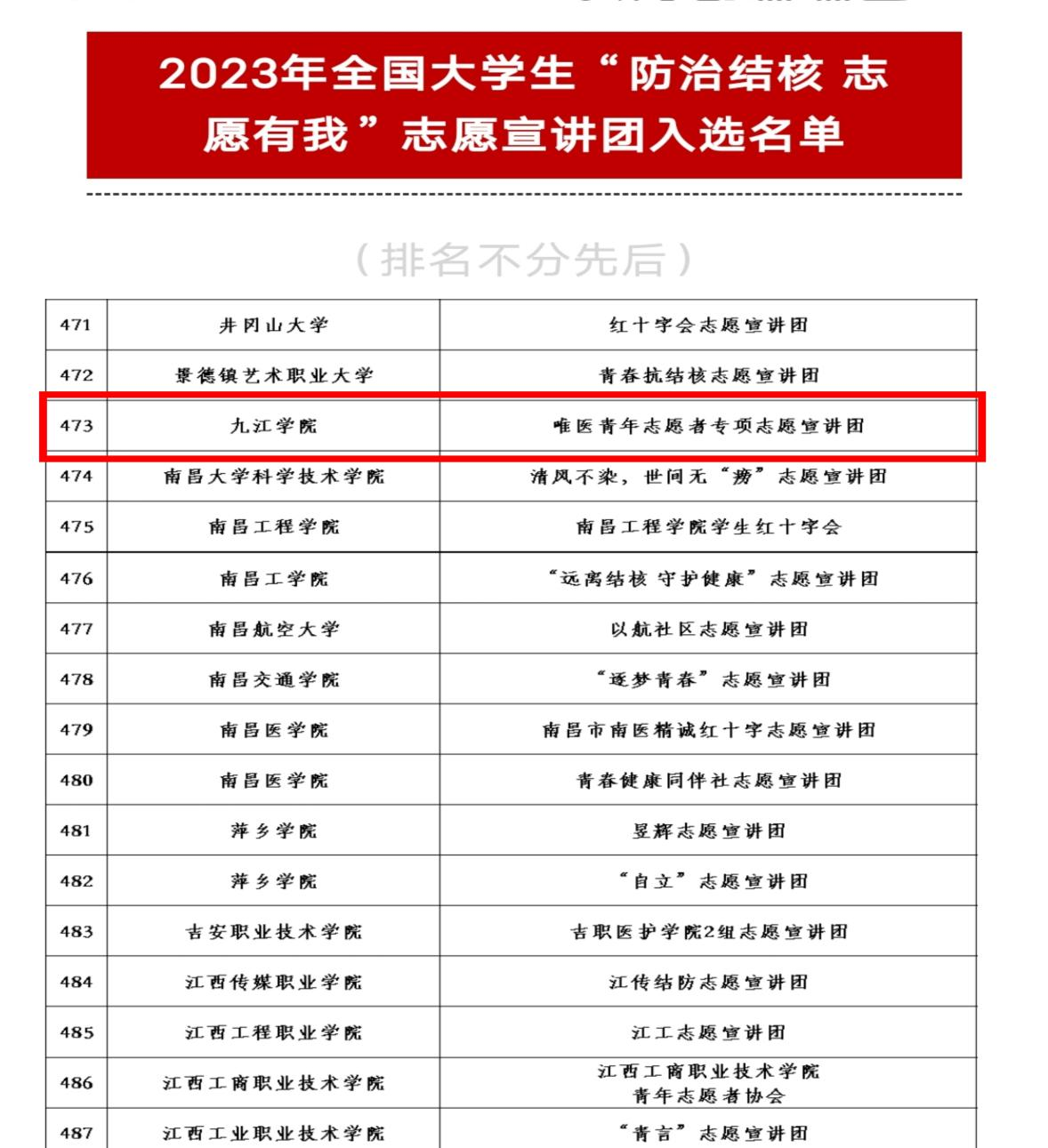 永利yl23411集团官网唯医志愿宣讲团入选2023年全国大学生“防治结核 志愿有我”志愿宣讲团
