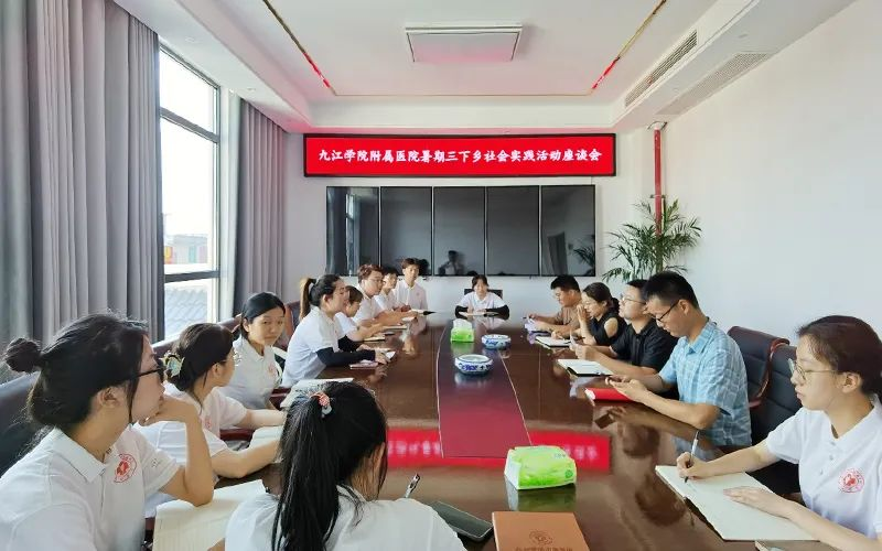 当天下午,服务队到达湖口县张青乡,与张青乡干部、卫生院主要负责人召开暑期“三下乡”社会实践活动座谈会。会上服务队与当地卫生院和乡干部就张青乡医疗卫生现状、产业发展、文化特色以及具体的活动安排等进行了交流探讨。