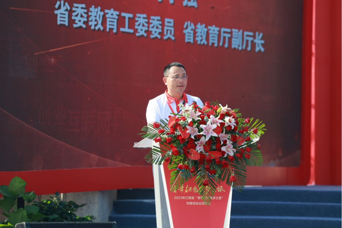 在出征仪式上,刘小强指出,“青年红色筑梦之旅”是一堂生动的国情大课,也是一堂有温度的思政大课。希望青年学子走进革命老区、贫困地区、城乡社区,用专业知识和创新创业的成果,为乡村振兴交出一份青春答案。他强调,面对全面推进乡村振兴的新形势、新要求,广大青年要以“励志”为先,做一个有家国情怀的人;要以“学业”为基,做一个有创新本领的人;要以“实干”为本,做一个有时代担当的人。紧扣乡村振兴的任务、国家经济社会发展的需求,用所学的知识和技能服务人民、服务农村,做乡村振兴的生力军,做民族复兴的顶梁柱。