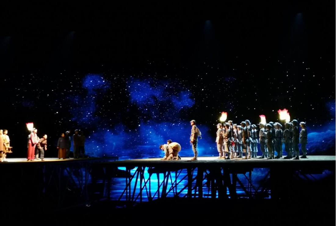 随着声声嘹亮的军号,“红旗飘,军号响,子弟兵,别故乡……红军主力上征途,战略转移去远方……”在于都河畔,长征渡口,情景剧《告别》演绎着中国工农红军从于都开启改变近代中国历史的长征故事。