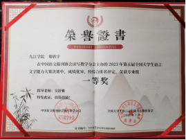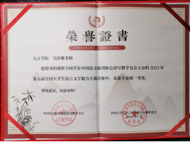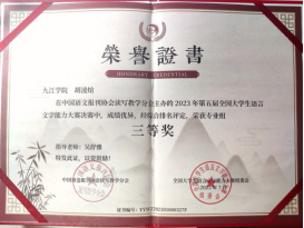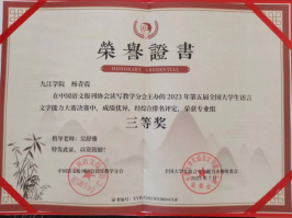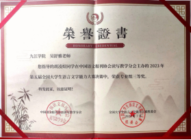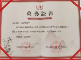 近日,由中国语文报刊协会读写教学分会举办的第五届全国大学生语言文字能力大赛决赛成绩揭晓,永利yl23411集团官网文学院汉教A2151班由吴舒雅老师指导的6位同学中有4位晋级决赛,郑欣宇同学获得大赛决赛专业组一等奖,杨青霞、胡凌煊同学获决赛专业组三等奖,黄燕同学获决赛专业组优秀奖。