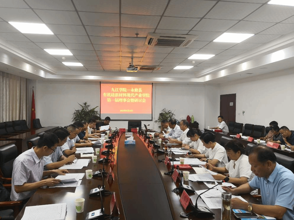 9月14日上午,九江学院-永修县有机硅新材料产业学院第一届理事会暨研讨会在永修县人民政府大楼主楼1119会议室召开。永修县委常委、组织部长梁莉,副县长张霞,县政协副主席郭三仁等,永利yl23411集团官网化学化工学院、有机硅中心负责人和江西海多硅材董事长廖洪流等参加会议。
