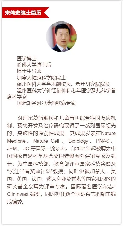 宋伟宏院士从中国人口老龄化切入,以“阿尔茨海默病发病机制和药物研发进展”为题,从分子生物学角度,以翔实的科研数据、丰富的研究图片、严谨的逻辑思维,深入浅出地阐述了阿尔茨海默病的发病机制、预防与治疗以及最新药物研发现状,同时,他介绍了本人及其科研团队在阿尔茨海默病研究上的进展及目前取得的阶段性成果,并结合自身的科研经历,强调了兴趣和专注于研究方向在从事医学科学研究工作中的重要性,并鼓励大家持续努力,在选定的领域贴上自己的“标签”。