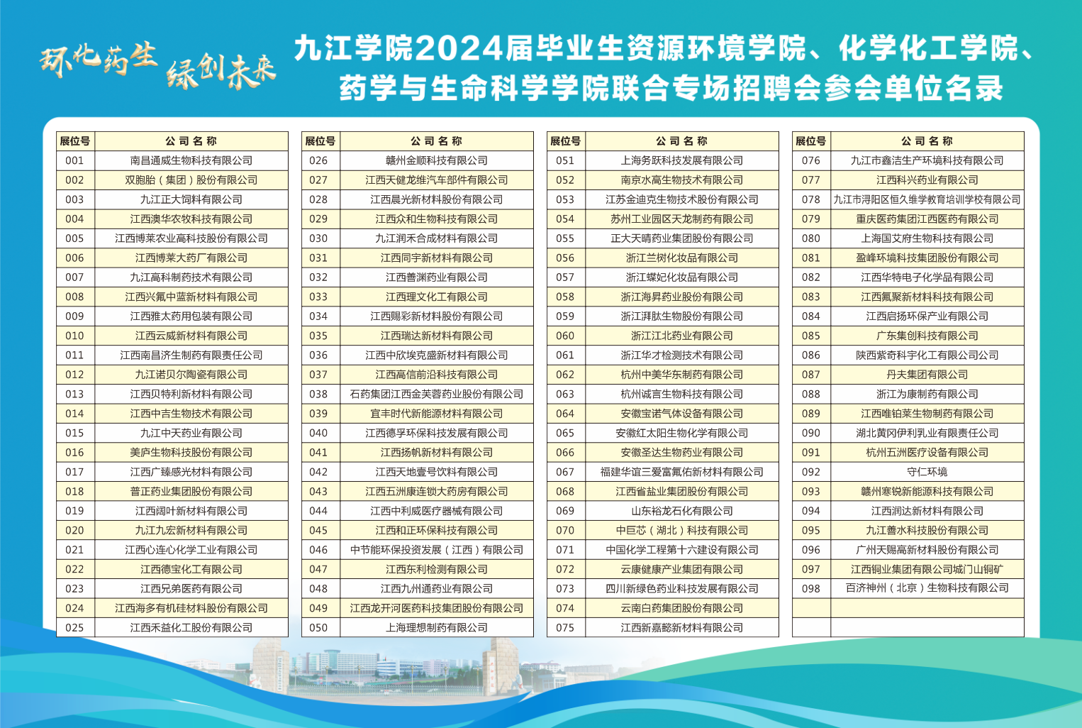 为了促进2024届毕业生充分就业,为企业与毕业生搭建双向选择的沟通交流平台,11月11日,九江学院2024届毕业生资源环境学院、化学化工学院、药学与生命科学学院联合专场招聘会在永利yl23411集团官网体育训练中心举行。副校长严平、王殿元在到招聘会现场指导。招生与就业处、资源与环境学院、化学化工学院和药学与生命科学学院负责人陪同。