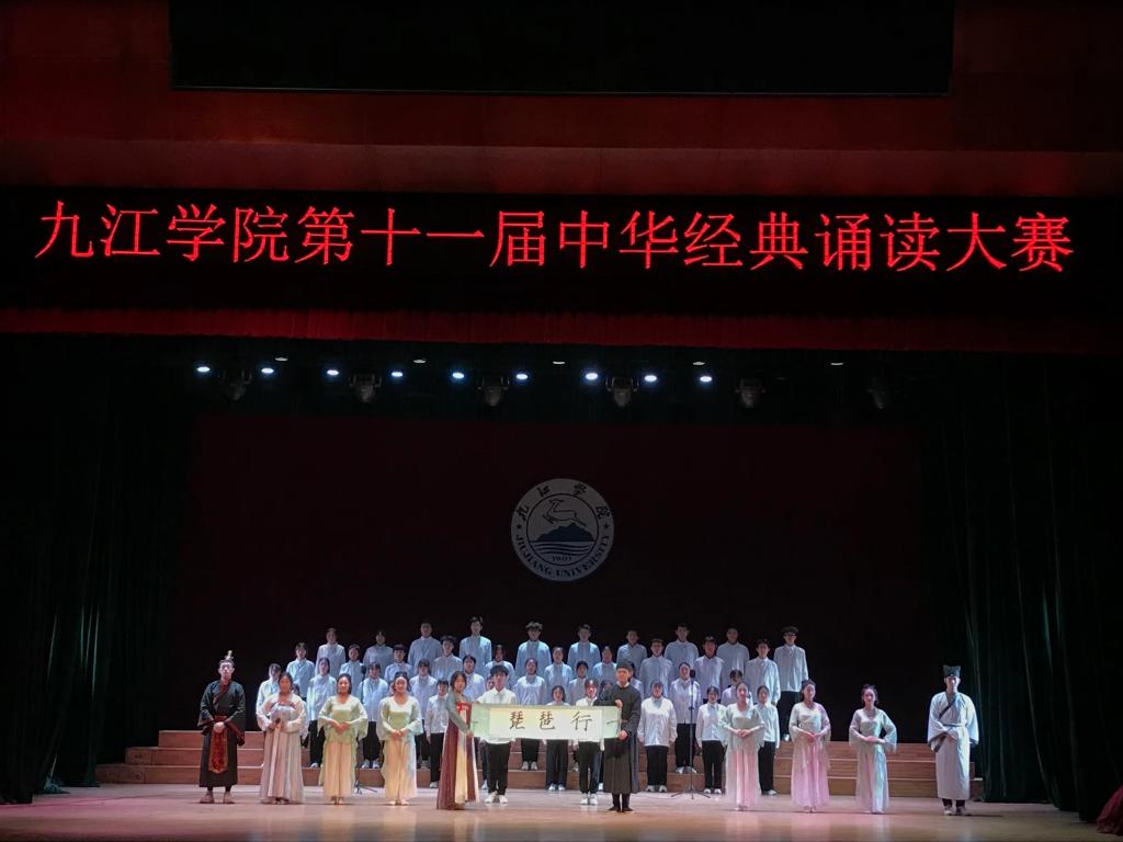 11月16日晚,九江学院大礼堂灯火辉煌,以“传颂诗词经典 共建文明校园”为主题的第十一届中华经典诵读大赛正在举行。经过激烈角逐,外国语学院和医学院获得一等奖;经济学院、机械与智能制造学院、法学院获得二等奖;建筑工程与规划学院、化学化工学院、旅游与地理学院、文学院、资源环境学院、药学与生命科学学院获得三等奖。
