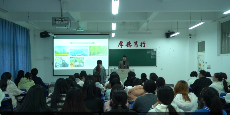 为了构建学校大思政育人格局,努力打造一批学生喜爱、终生受益的优质思政课,九江学院不断探索新时代高校思政课教学新模式。近日,九江学院马克思主义学院策划开展了思政课“师生同台”示范课建设。12月11日,在“师生同台”示范课上,夏仕教授与李媛媛、朱祖荣两名同学共同讲解了《习近平新时代中国特色社会主义思想概论》课第十二章第一节的内容《坚持人与自然和谐共生,谱写生态文明建设新华章》。结合自己身边的环境变化,李媛媛、朱祖荣两名同学讲解了绿水青山就是金山银山的发展理念,号召每一位同学应该树立绿色低碳的健康生活方式和消费习惯。夏教授最后全面准确阐释了习近平生态文明思想,特别是讲清楚讲准确习近平总书记考察江西重要讲话精神,强调同学们要用心用情感悟习近平总书记的关心关怀,深刻领悟习近平总书记重要讲话精神蕴含的深远考量,以实际行动回报习近平总书记和党中央的关心厚爱。