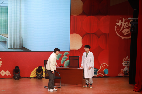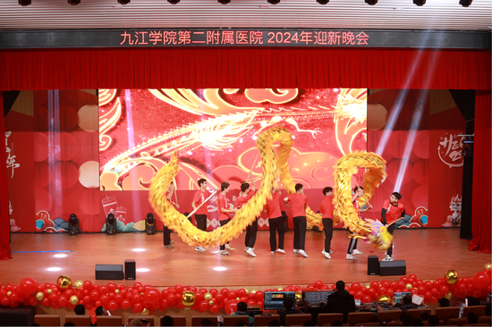 元旦晚会以“感恩相伴、携手未来”为主题,在九江学院龙狮代表队带来的开场秀《鼓韵龙腾》中拉开序幕,节目形式丰富多彩,囊括了歌舞、乐队表演、舞台剧、三句半等,来自药学与生命科学学院、护理学院、医学院、体育学院的各专业学生及附属口腔医院职工代表,同医院医、技、药、护、行政各类职工都参与到了本次晚会表演中,为现场观众带来了酣畅淋漓的视觉盛宴,展现了团结向上的良好氛围和昂扬进取的精神风貌。在医院正式运营一周年之际,教职员工欢聚一堂,在欢声笑语中许下对新年的期许。