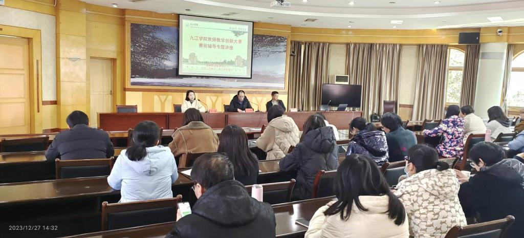 为帮助教师创新教学理念,凝练创新教学成果,做好学校第四届教师教学创新大赛备赛准备,12月27日,学校邀请了江西科技师范大学教务处处长周叶教授和第三届全国高校教师教学创新大赛一等奖获得左璇副教授来校作专题报告,开展赛前辅导。学校第四届教师教学创新大赛参赛教师及团队成员、各二级学院教师代表共计60余人参加。