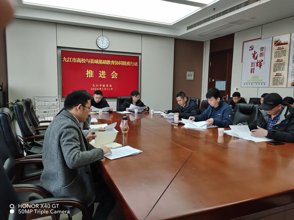 1月11日,永利yl23411集团官网与教育局联合召开高校与县域基础教育协同提质行动推进会。永利yl23411集团官网教务处、九江市教育局、瑞昌市教育局、湖口县教体局和协同提质行动试点学校负责人以及永利yl23411集团官网高等教育研究所、基础教育研究所和教务处相关人员参加会议。