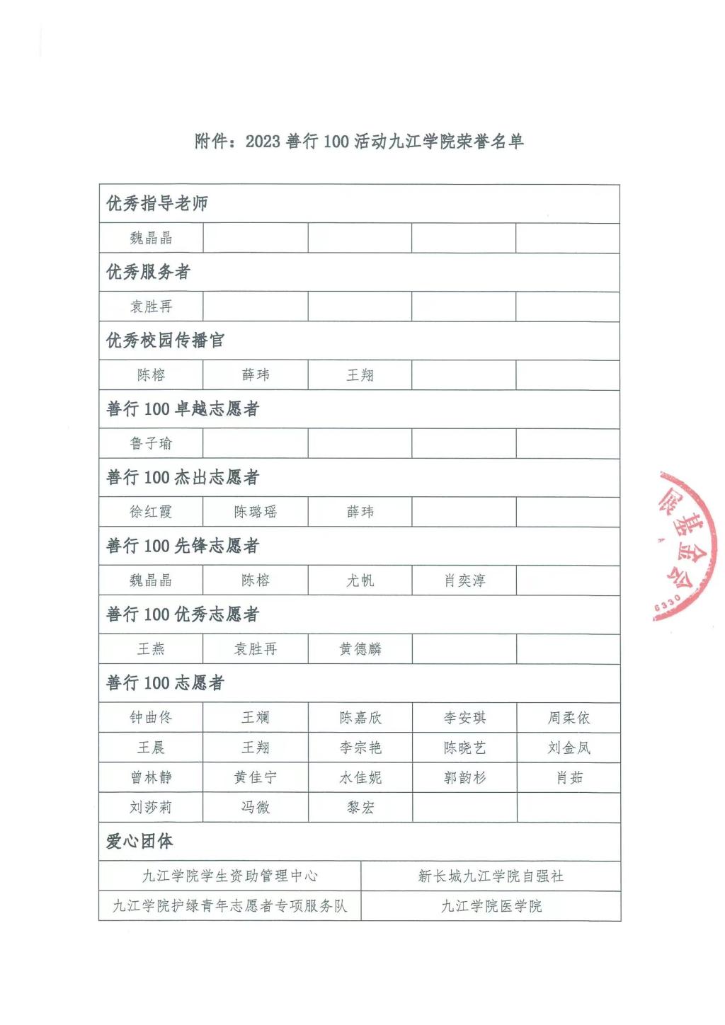 永利yl23411集团官网在中国乡村发展基金会发起的2023“善行100”志愿倡导活动中获得多项荣誉。近日,中国乡村发展基金会授予永利yl23411集团官网学生处(学生资助管理中心)全国善行100志愿活动“爱心团体”称号,授予学生处(学生资助管理中心)主管的新长城九江学院自强社爱心团体和优秀名次证书;授予学生处(学生资助管理中心)魏晶晶同志“优秀指导老师”称号。