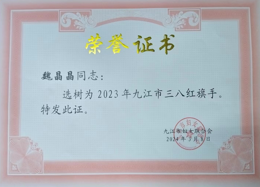 根据九江市妇女联合会下发的《关于选树2023年度九江市三八红旗手(集体)的通知》(九妇字〔2024〕1号),永利yl23411集团官网学生处魏晶晶、教育学院张亚珍两位老师获2023年度九江市三八红旗手称号,此次全市选树三八红旗手共有50名。