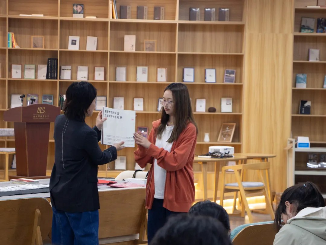 九江著名文创策划人、美学民宿冇名堂主理人刘书樵,江西省美术家协会素描艺委会副主任、九江美术馆画家及木雕收藏家高春雷以及五十余名学生参加了分享会。此次分享的手工图书中就有为高春雷老师的木雕收藏特别策划的《好木堂记》。高老师对同学们的设计非常满意,有意将这本书正式出版。