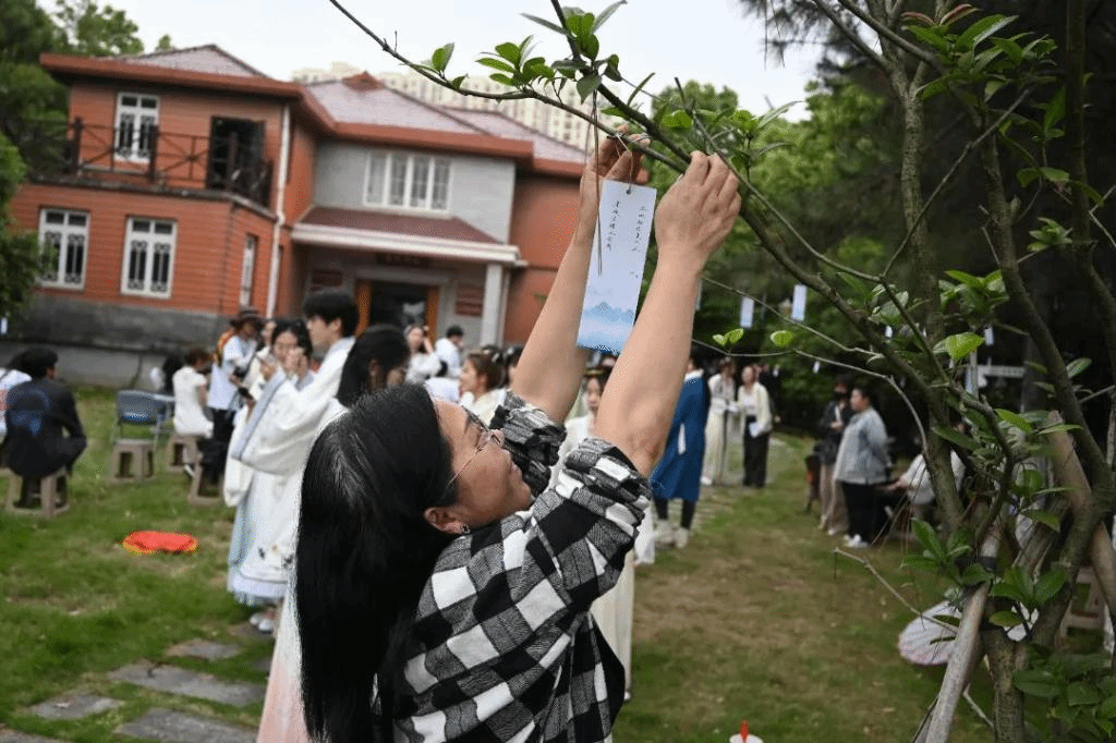 诗会还设置了户外投壶游戏及谷雨心愿贴DIY制作体验项目,带领参与者解锁不一样的诗会新玩法,感受独特的春日体验。来自九江市妇儿家教指导中心的孩子们和师生们一起观赏了诗会,参加了游戏。