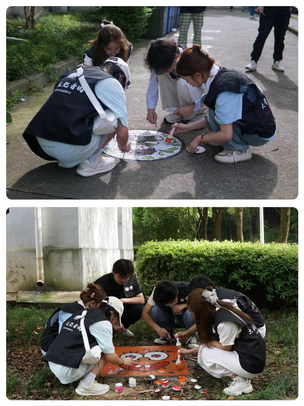校园内看似“从未消失”的井盖创意画其实是志愿者们“传承已久”的接力,“井盖漫说”主题活动作为护绿青年志愿服务队的特色志愿活动,已经开展了三次。据护绿青年志愿服务队队长万敏介绍,2023年3月份,护绿青年志愿者专项服务队与材料学院志愿者服务队合作,此后定期与其他志愿者服务队持续合作,开展“井盖漫说”活动。“起初,我们想通过可爱有趣的井盖绘画,让同学们获得心情的治愈,增添校园景色的同时,也能维护同学们脚底下的安全。后来,越来越多的人加入我们去画去行动,井盖绘画将护绿和同学们紧密联系。”护绿青年志愿专项服务队副队长黄孟汐说道。在他们的影响下,大到爱江、心予、唯医等校级志愿专项服务队,小到材料学院、电子学院、旅游与地理学院青志部门等二级学院青志部门都接下了这根接力棒。