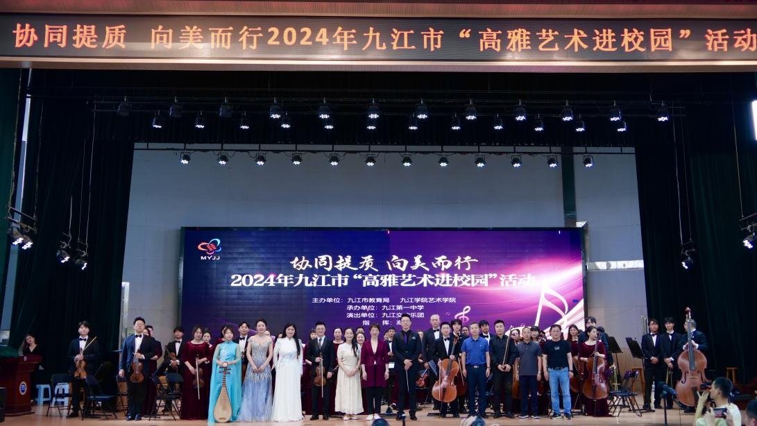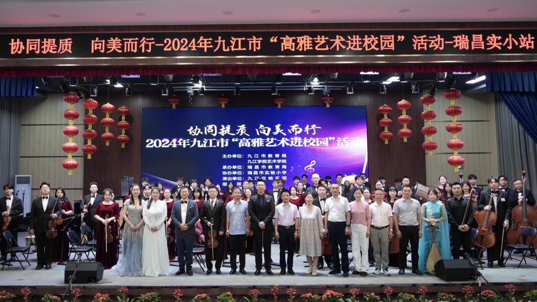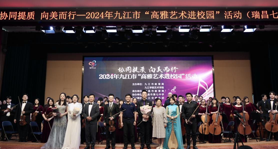 5月23日至5月25日,由九江学院艺术学院与九江市教育局共同主办的“协同提质、向美而行”2024年九江市高雅艺术进校园活动巡演音乐会举行。本次巡演由瑞昌市教育局、九江市第一中学、九江市第三中学、湖口县教育局、彭泽县教育局共同承办。由永利yl23411集团官网艺术学院师生组建而成的九江交响乐团分别前往九江市各县区6所中小学进行了为期三天六场的巡演。