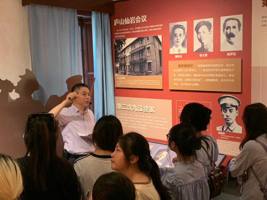 革命文物不仅是历史的见证,更是讲好思政课的生动教材,为“大思政课”建设提供了宝贵的“第二课堂”,马克思主义学院便创新性地利用这一资源,开展了一场别开生面的实践教学。5月29日下午,教育学院A2321班全体同学在马克思主义学院中国近现代史纲要教研室副教授余建明的带领下,前往国民革命军第二十四师叶挺指挥部旧址(八一起义策源地纪念馆),结合《中国近现代史纲要》课程进行实地授课。这一创新的教学形式让学生们纷纷表示:“将课堂搬到革命旧址,这样的教学形式很好!”