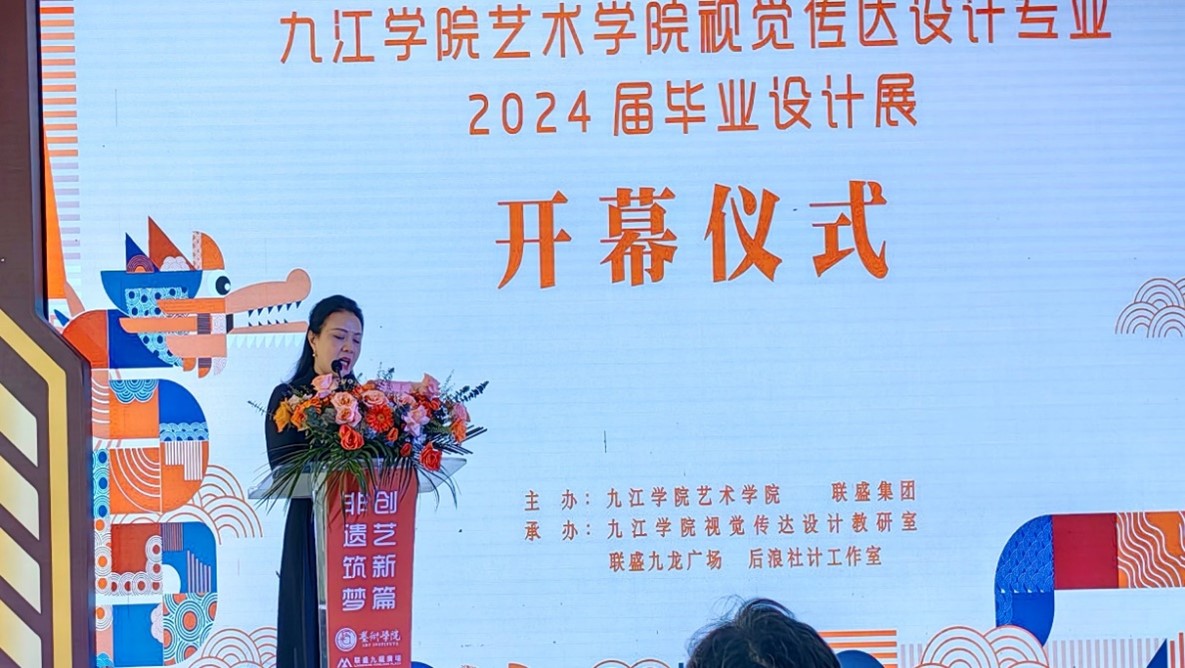 开幕仪式上,王万山宣布展览开幕。联盛集团副总裁严永红在致辞中对毕业生的作品给予了高度评价,并期待与九江学院深化合作,共同推动传统文化的传播与产业化发展。艺术学院视觉传达设计专业A2072班鲍如意同学代表毕业生发言,表达了对学校、老师和同学们的感激之情,并立志在未来的道路上不断超越自我,用专业知识服务社会。