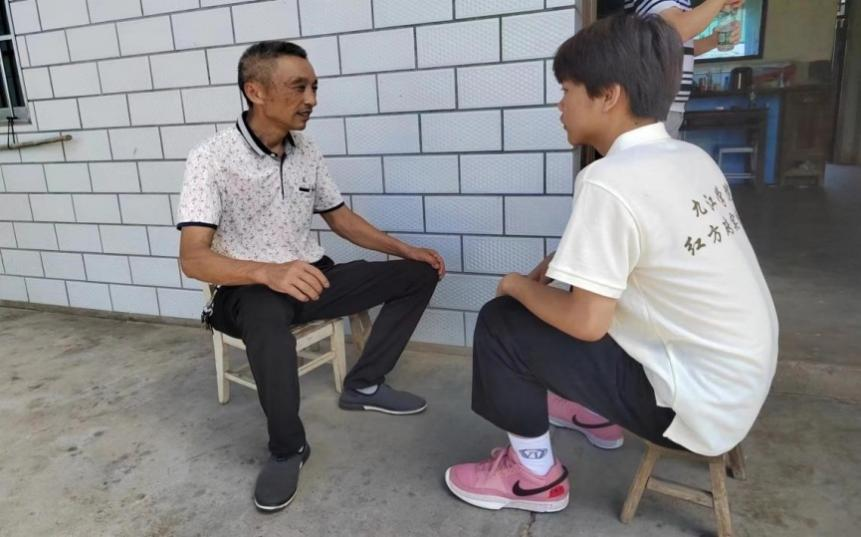 退伍老兵李文若向实践队员黎凌云讲述革命烈士故事