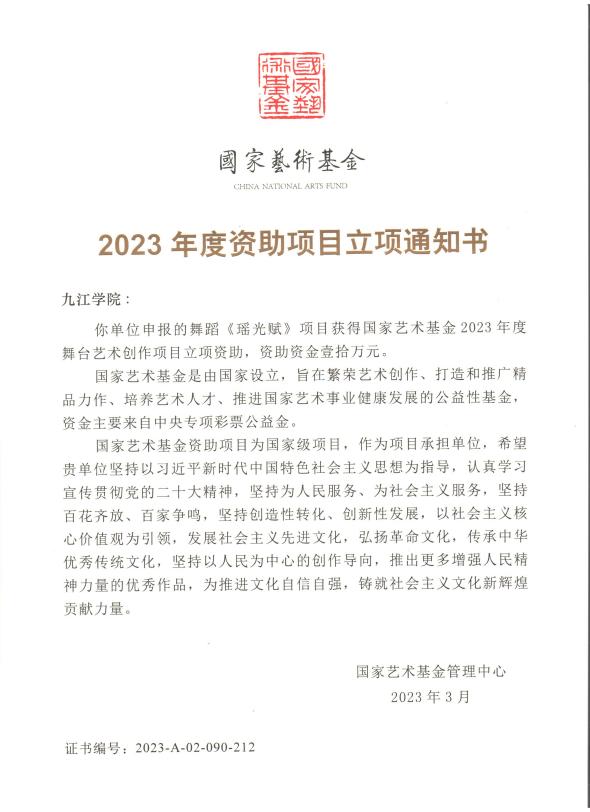 原创舞蹈《瑶光赋》入围第十三届中国舞蹈《荷花奖》古典舞终评,并获国家艺术基金2023年度资助项目立项