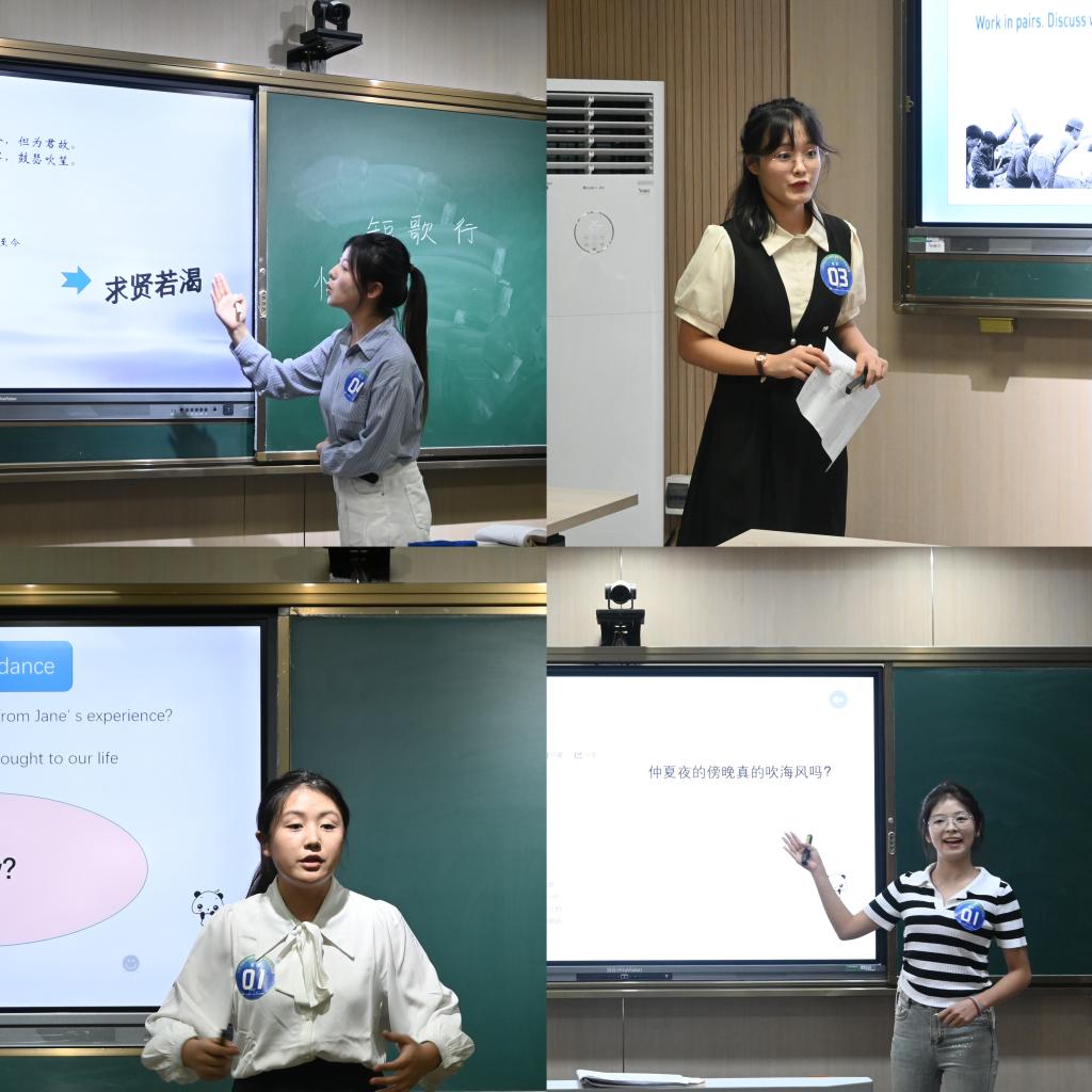 专家逐一对选手进行了细致全面的点评和精准高效的指导,帮助参赛选手分析优势与亮点,找准差距与不足。专家点评从高标准、严要求、贴近教学一线的实际需求角度,从学情、教学相长、教学研究、教态、情感价值传播等方面对他们提出了意见和建议;从课堂表现、教学方法、教案设计、板书规范书写等方面为他们亲自做了示范,以“多对一”帮扶式的指导助力学生专业素质和能力不断提高。