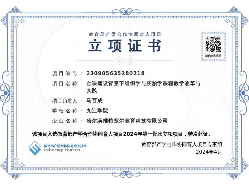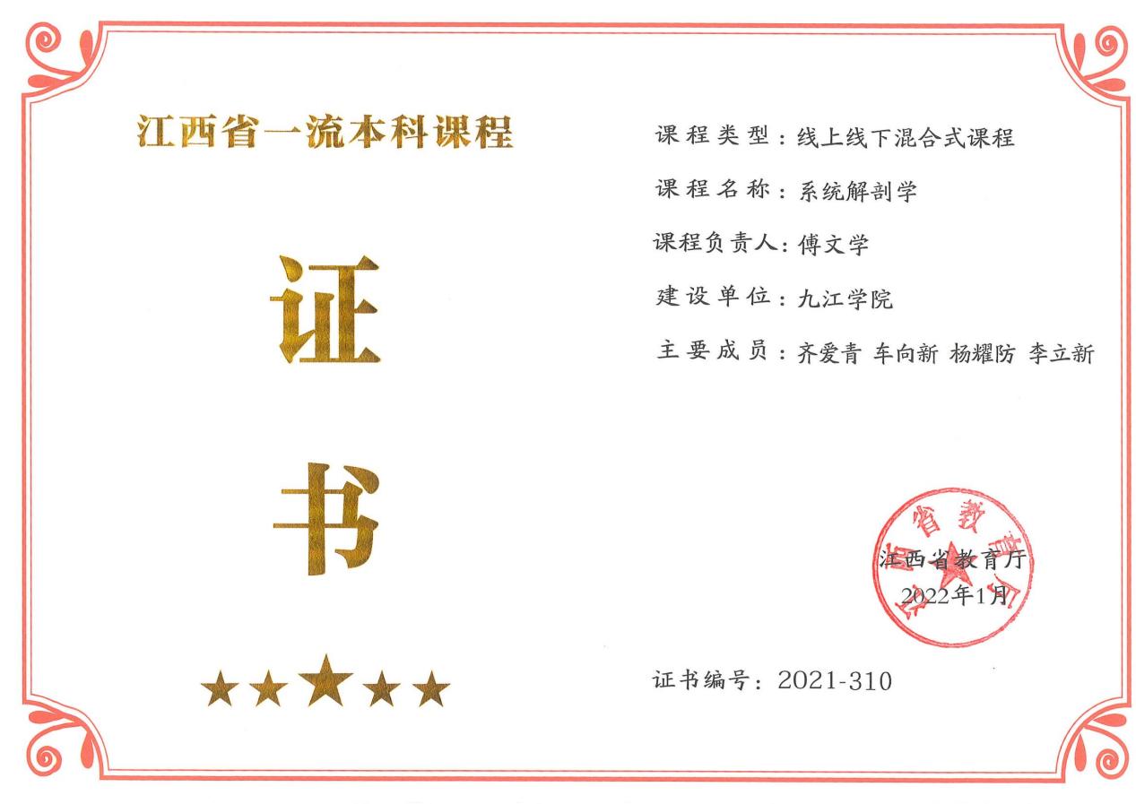 基础医学整合创新实验教学团队获批2022年江西省高水平本科教学团队以及九江学院校级教学团队建设点,血吸虫病实验室诊断与健康教育虚拟仿真实训系统虚拟仿真实验教学项目获评江西省虚拟仿真实验教学项目,医学生物化学与分子生物学和系统解剖学获2020年省级精品在线开放课程,系统解剖学与药理学获江西省2022年线上线下混合式一流课程,2人次获江西省青年教学竞赛医科组二等奖。另外获省级教改课题4项、教育部产学研合作育人项目3项、校级课程思政示范课程3门、校级教学成果二等奖4项。近年来,学院成功获批各类科研项目73项,其中国家自然科学基金14项、省级项目12项,发表SCI论文66篇。