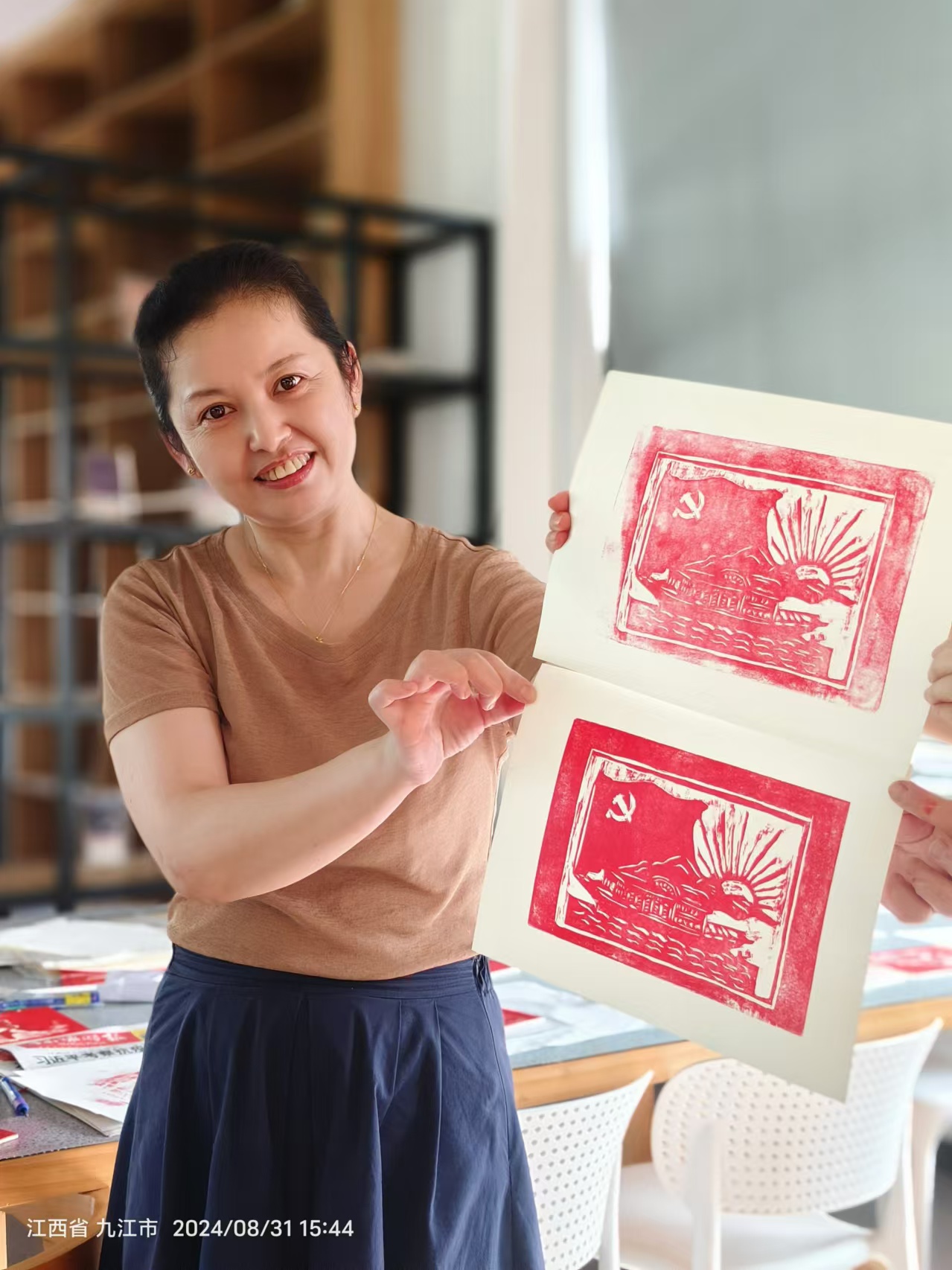 “拿起刚刚印制完成的版画时,身为一个中国人的自豪感油然而生!”九江学院机关党委四总支的雷红老师激动地说道。