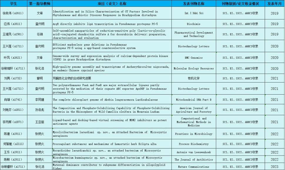 坚持本科生导师制度,发挥科研先导作用,学生综合素养和创新实践能力稳步提升。在学业导师、课外科技活动及学科竞赛活动指导教师、毕业论文(设计)指导教师“三位一体”模式培养下,学院教师指导学生获国家级大学生创新创业训练项目17项、省级大学生创新创业项目27项。培养本科学生以第一作者发表学术论文41篇,其中在Nature Communications等SCI收录期刊发表论文16篇。指导学生获“挑战杯”全国大学生课外学术科技竞赛江西省赛区一等奖1项、二等奖1项、三等奖5项;获全国大学生生命科学创新创业大赛国家级一等奖4项、二等奖2项;获全国大学生生命科学竞赛国家级二等奖14项、三等奖10项,省级一等奖1项、二等奖9项、三等奖14项;获全国医药院校药学/中药学专业大学生实验技能竞赛二等奖2项、三等奖1项;获全国大学生制药工程设计竞赛二等奖2项、三等奖2项;获全国大学生药苑论坛二等奖1项;获全国师范院校师范生教学技能竞赛优胜奖1项;获华文高校生物师范生教学技能测试金奖1项、铜奖3项,华文高校生物师范生教学设计测试金奖1项、铜奖3项,华文师范院校师范生生物学科教学设计能力测试二等奖1项、三等奖2项,华文师范院校生物学科师范生线上教学能力测试二等奖1项、三等奖4项。连续五年考研平均录取率达30%左右,就业率位列前茅,并呈逐年提高的趋势,就业单位满意度调查充分肯定学院毕业生实践能力。