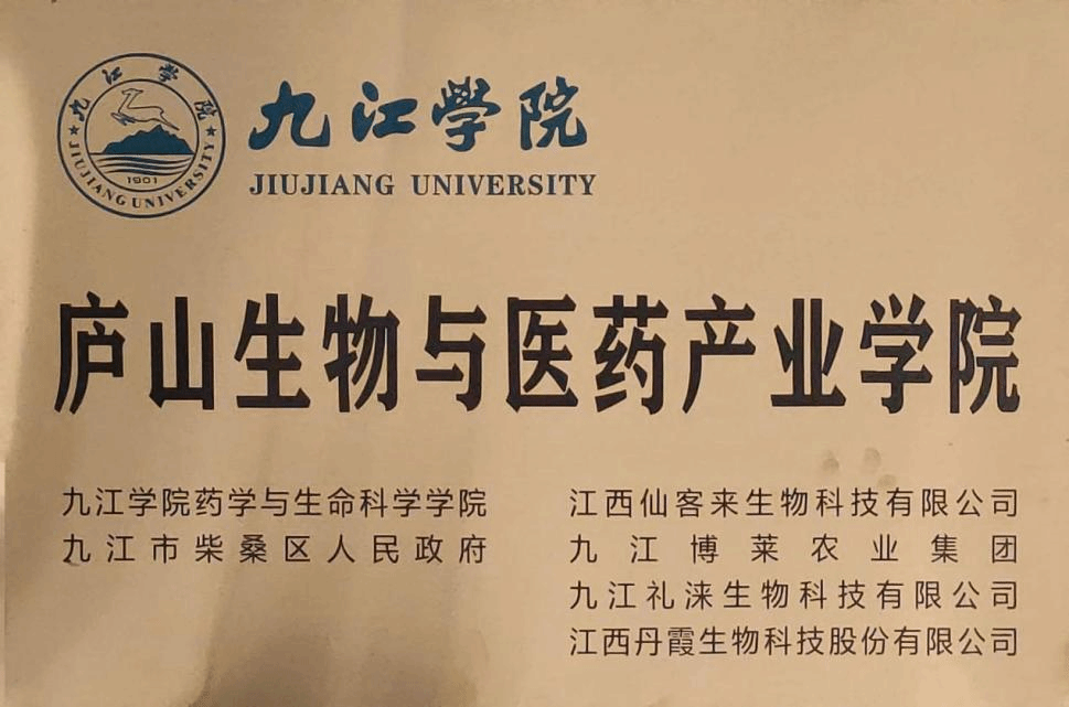 获批赣西北中药资源开发与利用等4个九江市重点实验室,建有九江市博正生物科技产业研究院、江西九祥水产产业发展研究院、庐山生物与医药现代产业学院、中国生物工程学会九江学院科技服务中心等产学研合作机构;建强江西省中国科学院庐山植物园、江西仙客来生物科技有限公司、九江博莱农业集团等14家在九江市及周边地区代表性强、合作基础好、专业适配度高的课程实践教学和校外实习实训基地。