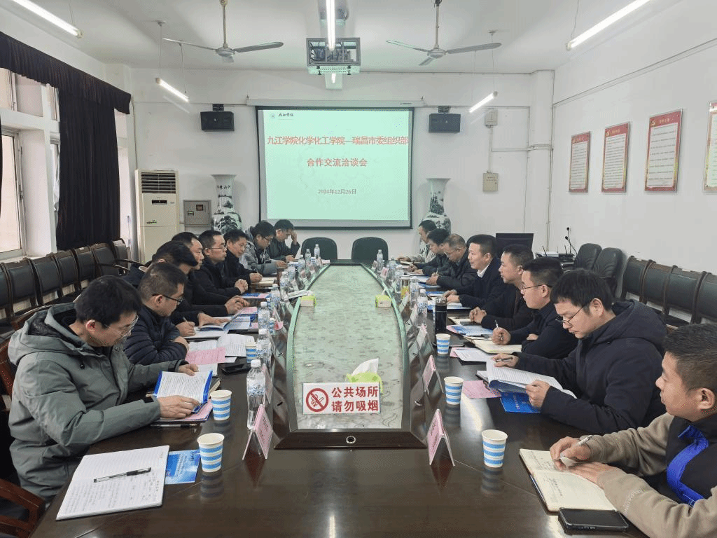 为进一步深化校政企合作,助力地方经济发展,12月26日,瑞昌市委常委、组织部部长郭日初,副部长周小石等一行来到化工学院交流洽谈。校党委委员、组织部部长杨杰出席会议,化工学院负责人及相关教师代表参加洽谈。