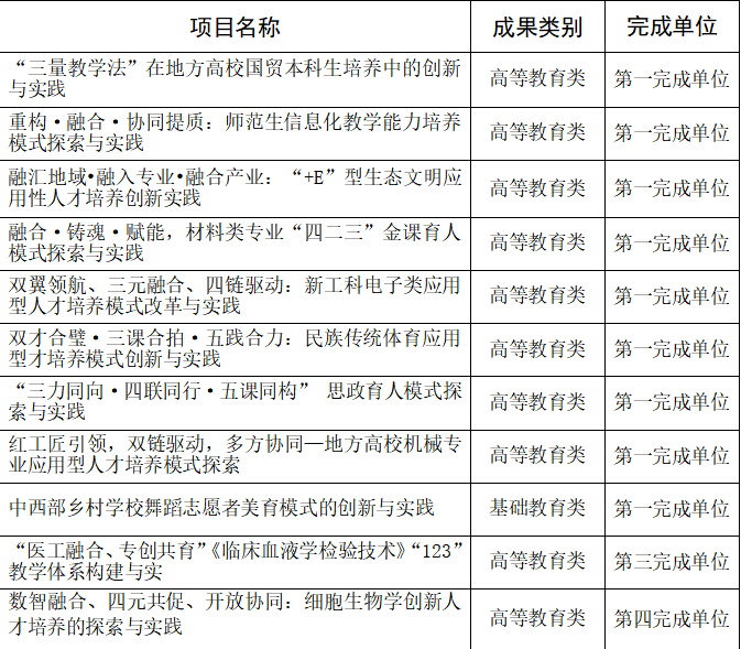 12月31日,江西省教育厅《关于公布2024年江西省教学成果奖青年培育项目评选结果的通知》(赣教科字〔2024〕12号)发布,永利yl23411集团官网共有11项省教学成果奖青年培育项目获批立项。其中,以第一完成单位获得高等教育类8项,基础教育类1项;以第三完成单位获得高等教育类1项,以第四完成单位获得高等教育类1项。具体名单如下: