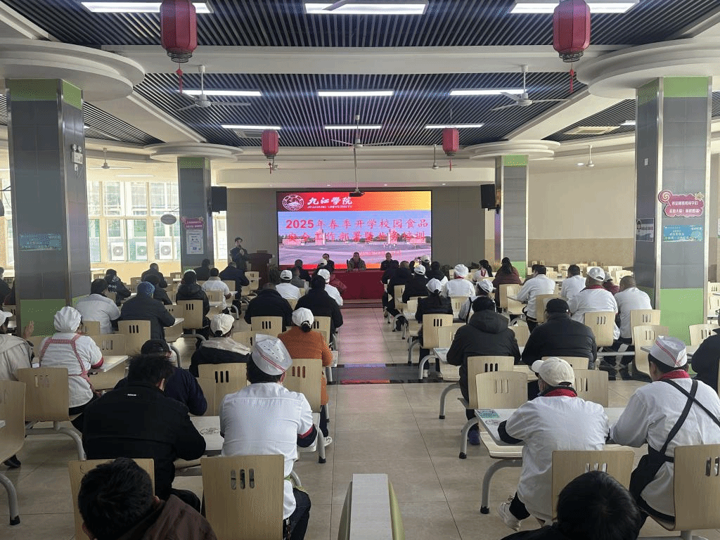 2月14日,资产管理处在濂溪宾馆一号会议室组织举办了校园食品安全专题培训会,永利yl23411集团官网资产管理处所监管的食品经营企业、门店商超的工作人员共计150余人参加了会议。培训会邀请了九江市濂溪区市场监督管理局副局长张兴明受邀作主题讲座。他结合近年来高校出现的食品安全典型案例,解读了《食品安全法》《餐饮服务食品安全操作规范》《企业落实食品安全主体责任监督管理规定》等法律法规,重点讲解了食品原料采购、储存、加工、留样、餐具消毒、从业人员健康管理等方面的规范要求,并对如何预防食物中毒等进行了详细讲解。