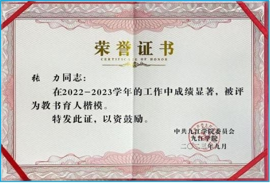 近三年,教师在全国混合式教学比赛、省级教学创新设计比赛、校级教学创新教学比赛中获得奖项4项;获得省级教学成果奖2项、省级教学改革项目8项;获得江西省社会科学成果奖三等奖1项。一批教师荣获优秀共产党员、教书育人楷模、优秀教师、优秀辅导员、优秀班主任等称号。