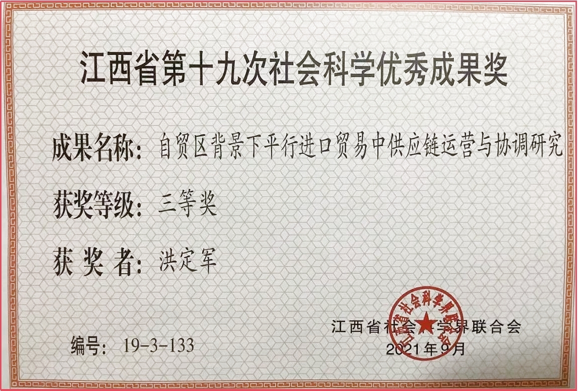 洪定军博士获得省级社会科学优秀成果三等奖