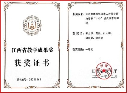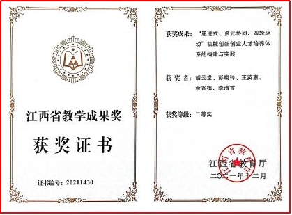 学院坚持以教学改革创新促进人才培养质量提升,充分发挥绩效考核等制度性、政策性导向作用,鼓励并激发教师积极投身教育教学改革,学院教学团队建设、专业和课程建设、教材建设等方面取得积极成效。学院实践教学团队获批江西省“工人先锋号”,获省级教学成果一等奖3项、二等奖1项,获江西省教学创新大赛二等奖2项。获批教育部产学合作协同育人的新工科研究项目5项,江西省高等教育教学改革研究课题9项。获江西省一流课程4门,校级一流课程、课程思政示范课程、校企合作课程共15门;江西省级教学团队1个,校级教学团队4个;获批2024年省级规划教材1项。