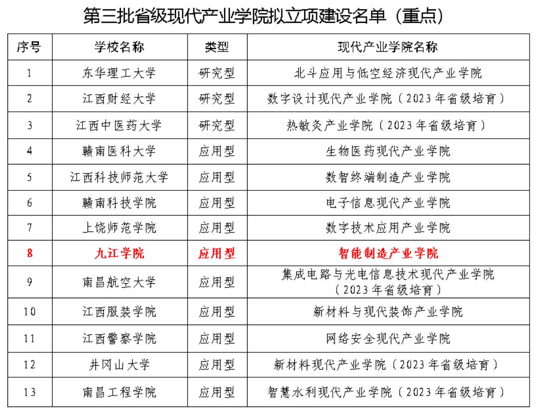 2.“1269”擎动校地企协同赋能,“9610”贯通产教研融创共赢。围绕江西省“1269”行动计划和九江市“9610”工程,与九江精密测试技术研究所等4家企业合作共建“智能制造现代产业学院”,2024年获批江西省重点产业学院。