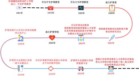 九江学院护理学院办学历史可追溯至1901年创办的但福德医院附设护士学校,是我国最早开展护理教育的学校之一。历经百年发展,学院在护理教育领域积累了深厚底蕴。1973年,开办中专护理教育;1995年,升格为大专护理教育;2003年,开设护理学本科专业;2005年,正式成立护理学院。目前,学院设有护理学和助产学两个本科专业,在读本科生947人,在职教职工40人,形成了从专科到本科的完整教育体系。