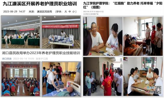 为服务地方养老事业,2023年学院依托护理实验中心及社区护理教学团队,被江西省民政厅认定为江西省养老服务人才培养实训基地。这是继实验教学示范中心后,学院第二个省级教学平台。学院每年为九江地区养老机构开展养老员培训及等级评定工作,多名教师入选民政局专家库,团队获养老机构及企业横向课题经费25万元。