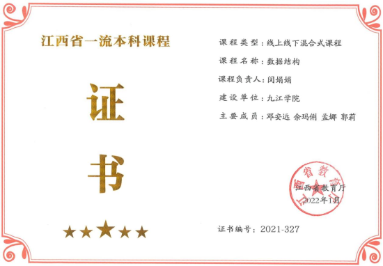图3-4《计算机程序设计基础(VB)》一流课程证书